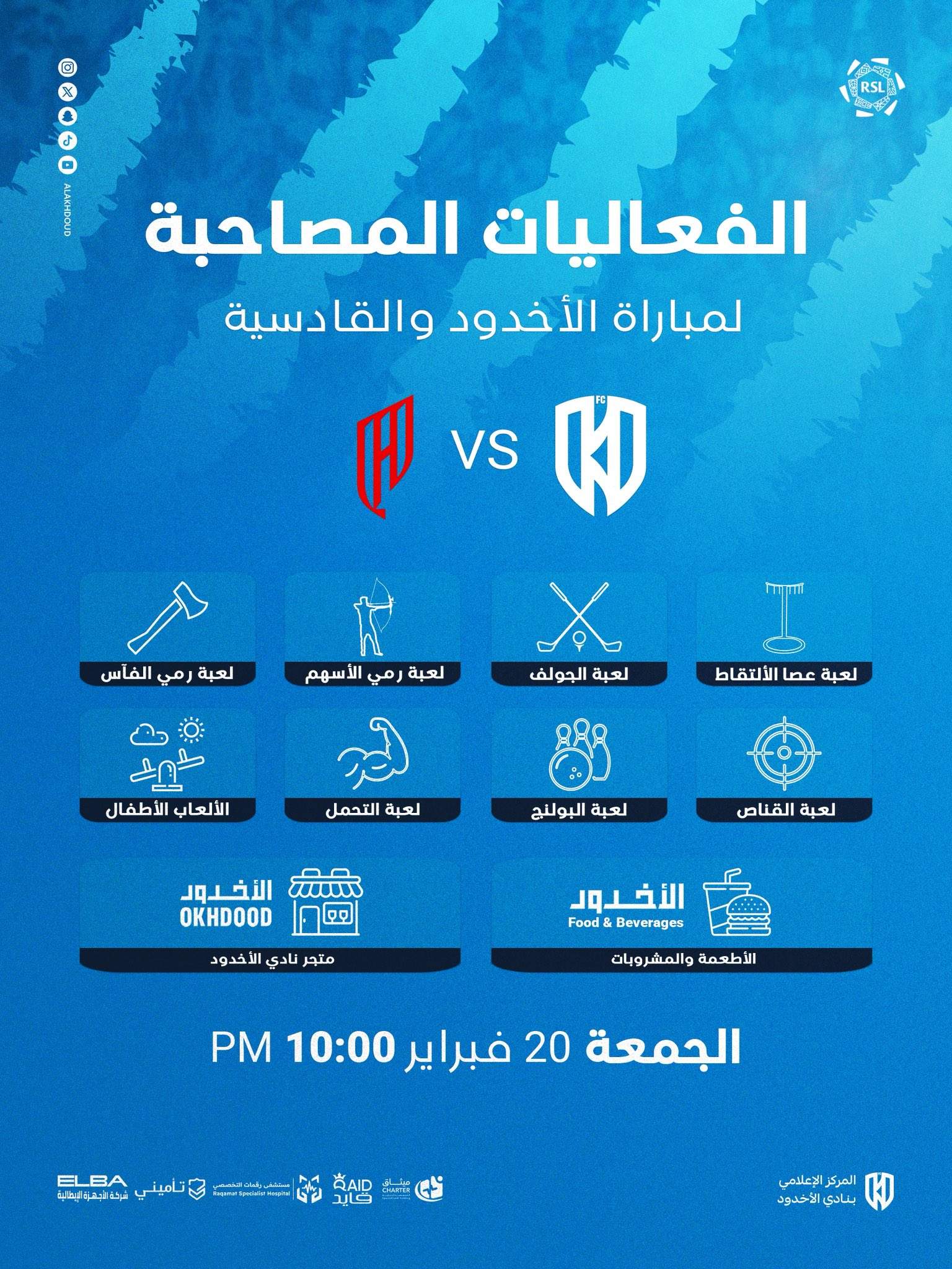 الاخبار التجارية الفعاليات المصاحبة لمباراة الأخدود ضد القادسية Posted by نادي الأخدود الرياضي 20 فبراير، 2026 On 20 فبراير، 2026