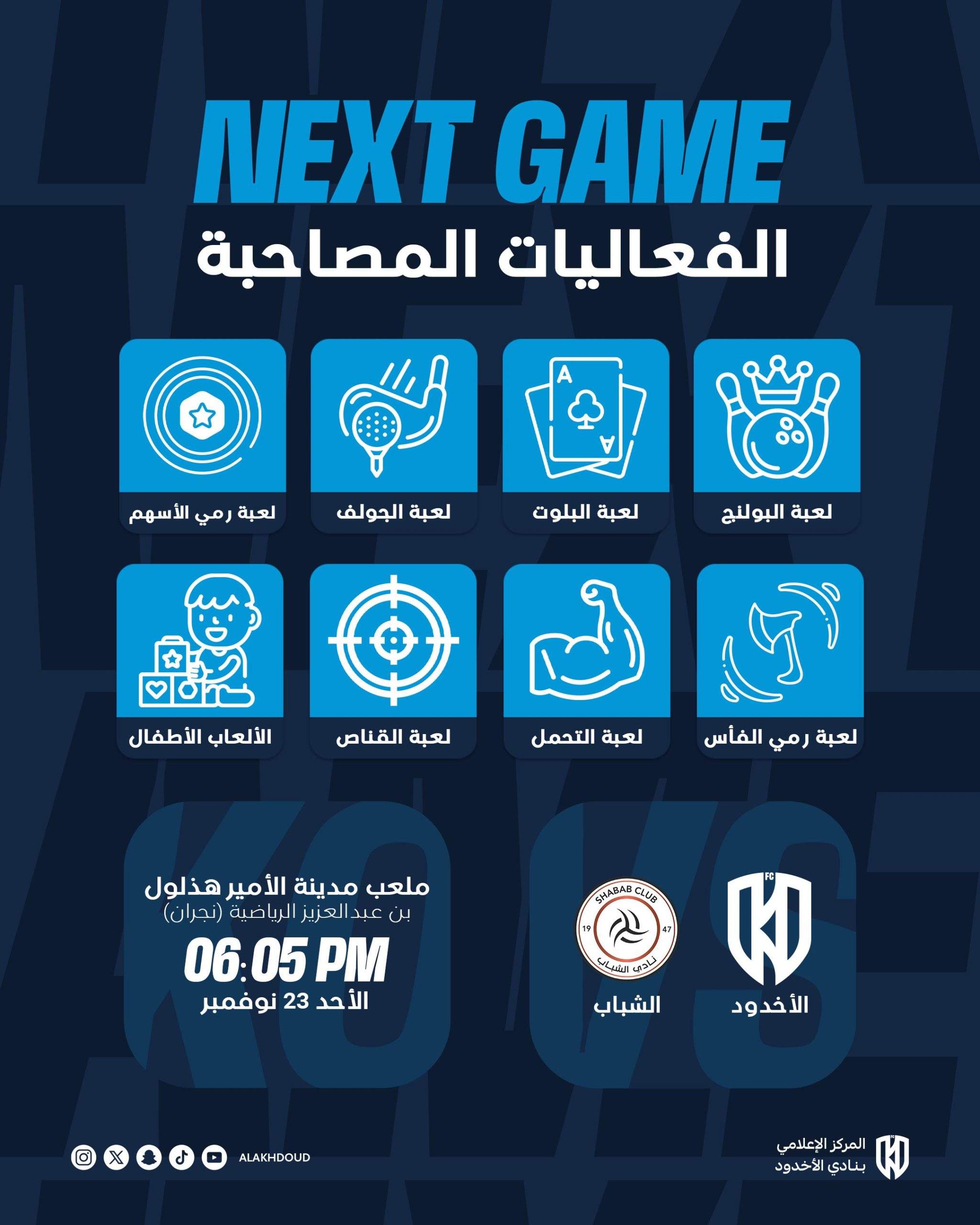التفاعل مع الجمهور و المسابقات الفعاليات المصاحبة لمباراة الاخدود والشباب Posted by نادي الأخدود الرياضي 20 نوفمبر، 2025 On 20 نوفمبر، 2025
