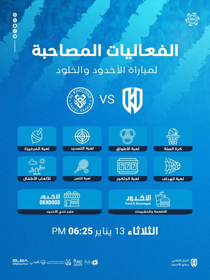 التفاعل مع الجمهور و المسابقات الفعاليات المصاحبة لمباراة الأخدود ضد الخلود Posted by نادي الأخدود الرياضي 13 يناير، 2026 On 13 يناير، 2026 الفعاليات المصاحبة لمباراة الأخدود ضد الخلود هدايا عينية قيّمة ألعاب وتحديّات فعاليات ترفيهية