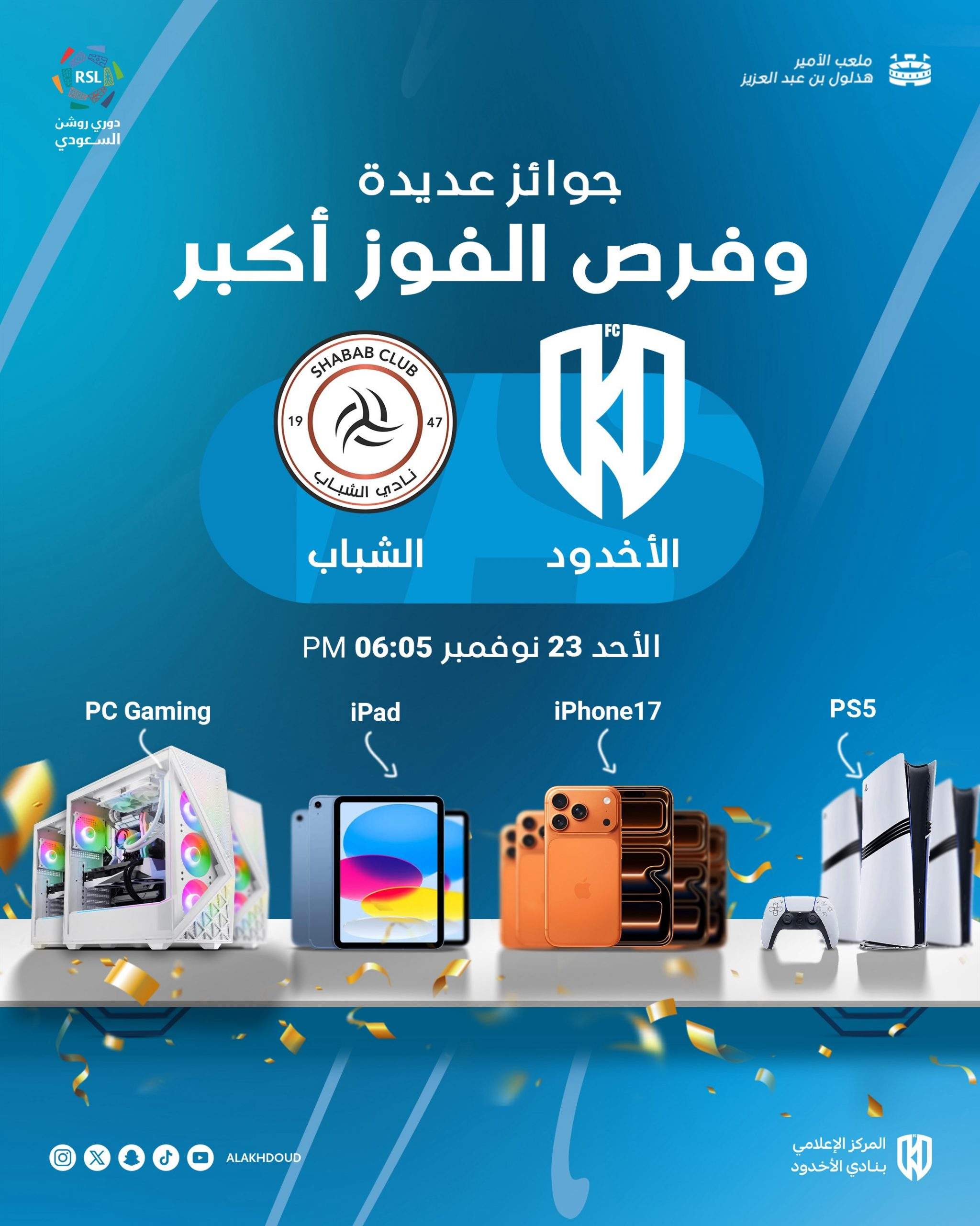 العديد من الجوائز تنتظركم في مباراة #الأخدود_الشباب 🎁🩵