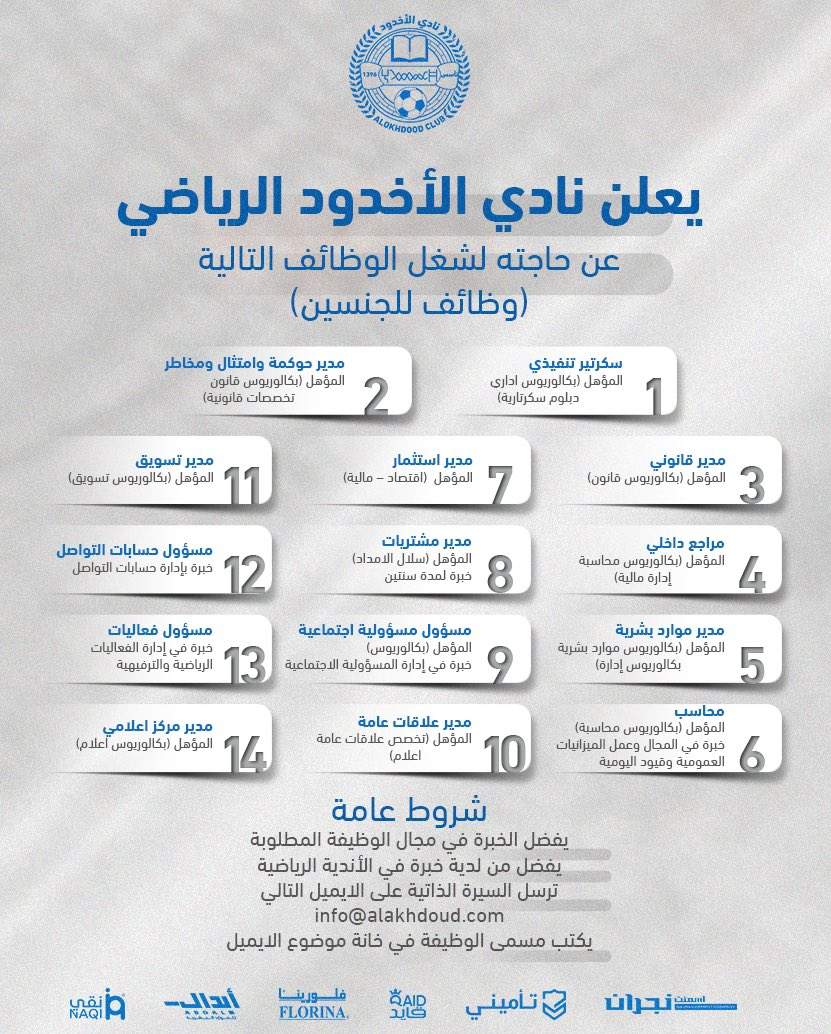 الاخبار الاجتماعية للسعوديين والسعوديات – يعلن نادي الأخدود وظائف شاغرة Posted by نادي الأخدود الرياضي 11 نوفمبر، 2023 On 11 نوفمبر، 2023