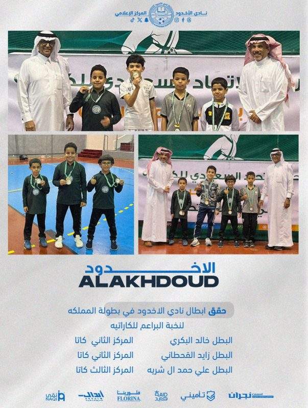 ألف مبروك لأبطال نادي الاخدود في بطولة المملكة لنخبة البراعم للكاراتيه
