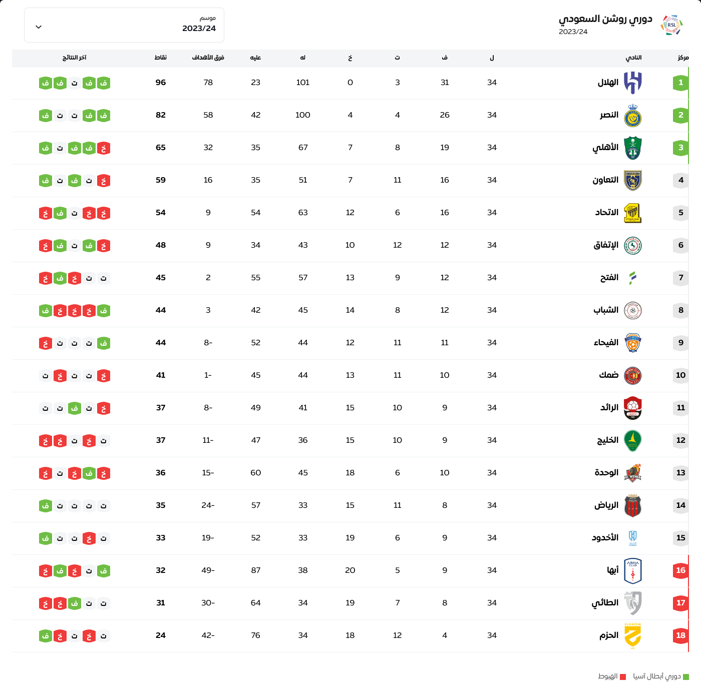 Homeدوري روشن السعوديموسم 2023-2024جدول الترتيب