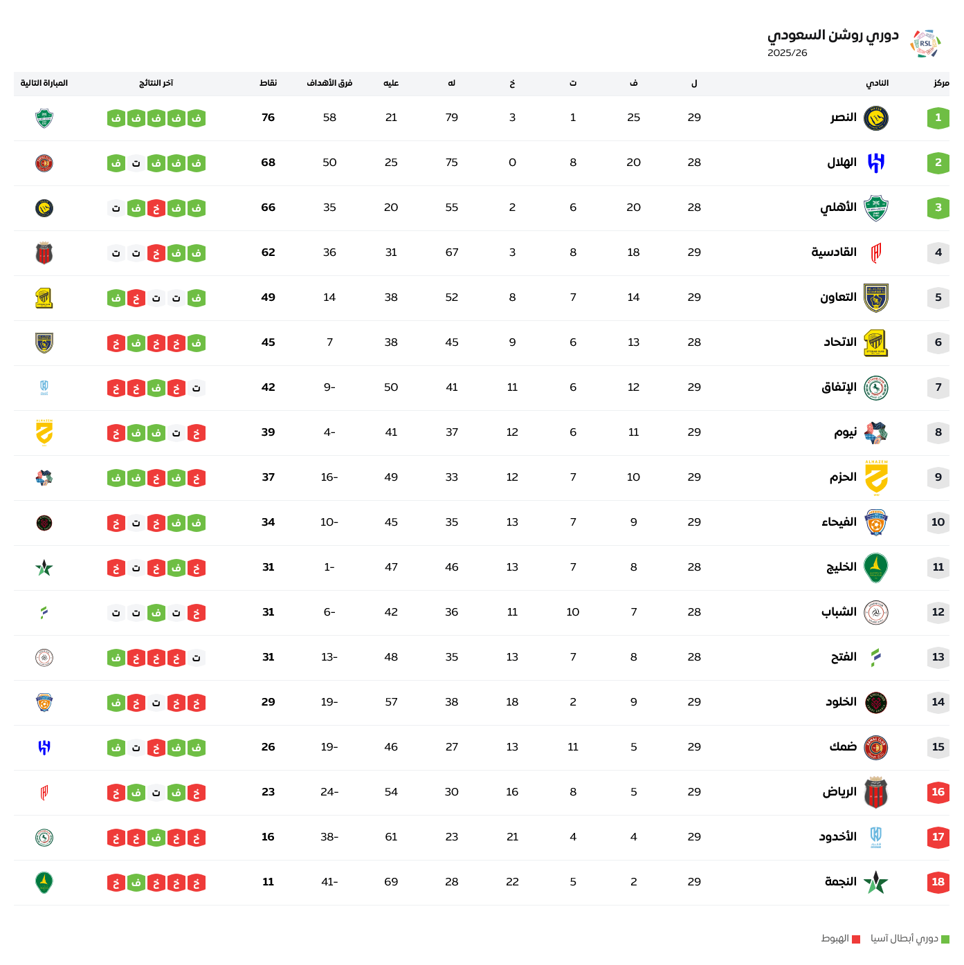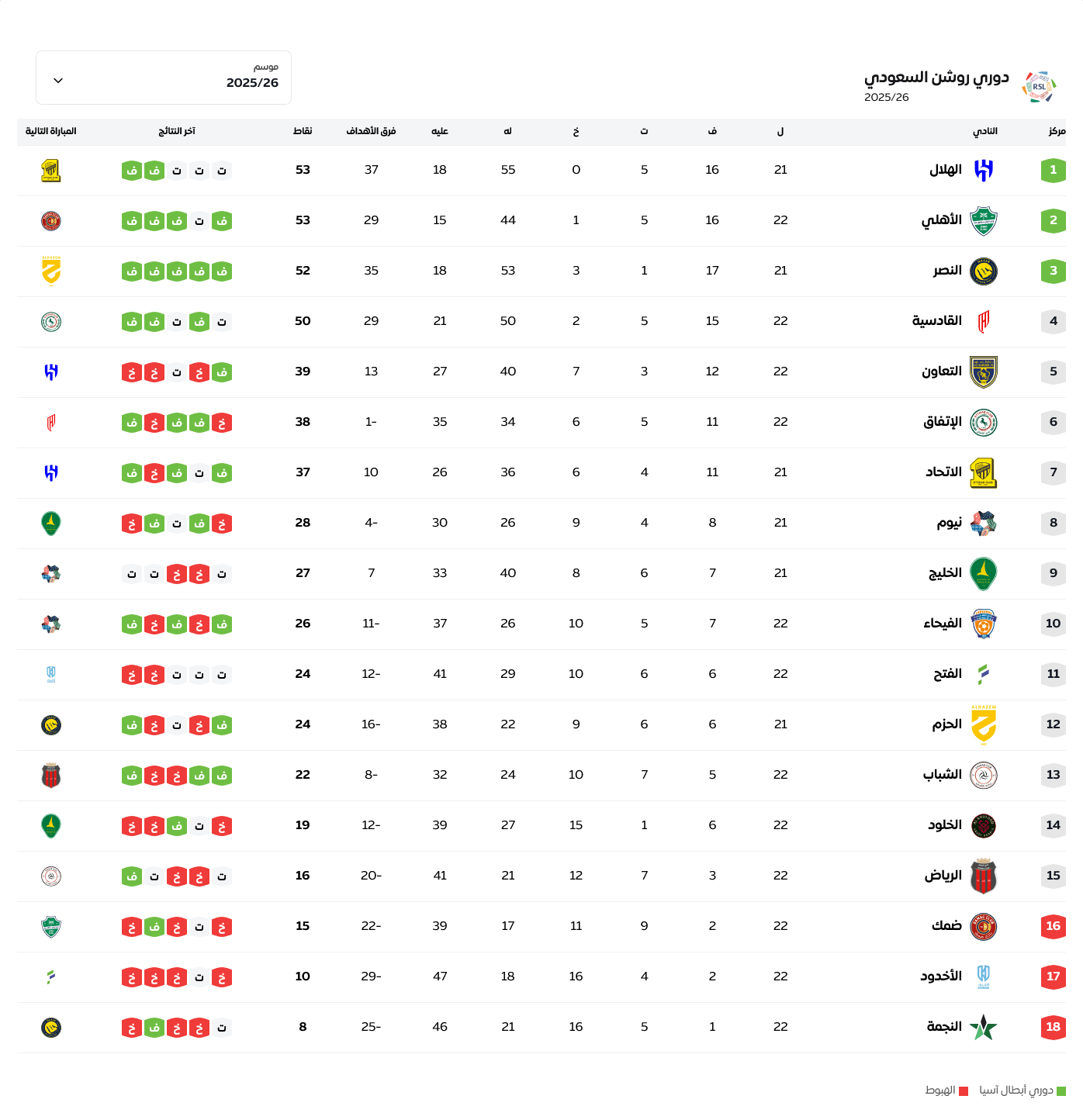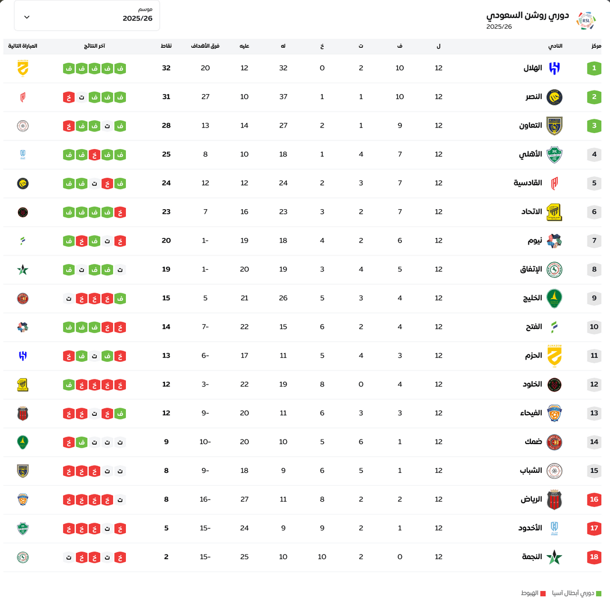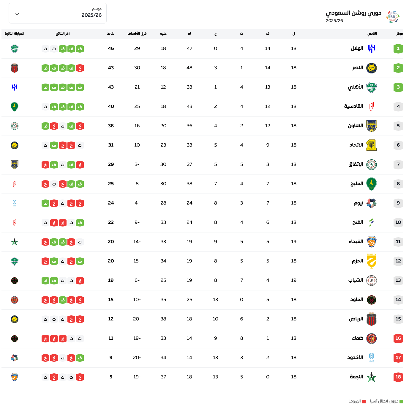 Homeدوري روشن السعوديموسم 2025-2026ترتيب الدوري