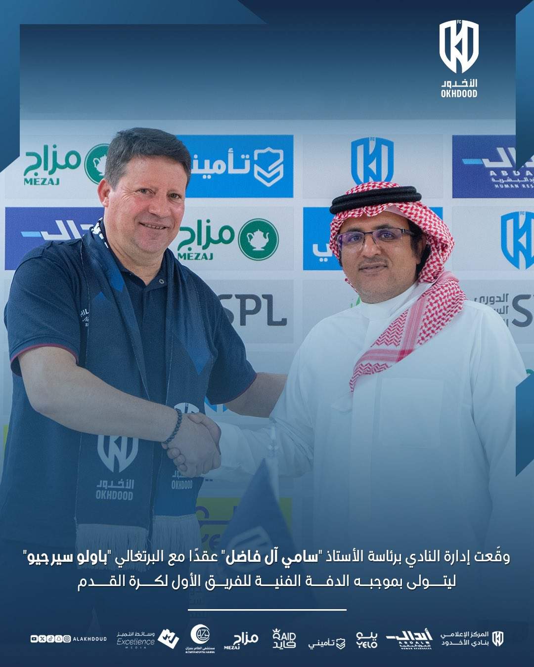 الاخبار الرياضية مرحباً بمدربنا الجديد باولو سيرجيو Posted by نادي الأخدود الرياضي 18 مارس، 2025 On 18 مارس، 2025 وقعت إدارة النادي برئاسة الأستاذ “سامي آل فاضل” عقدا مع البرتغالي “باولو سيرجيو” ليتولى بموجه الدفة الفنية للفريق الاول لكرة القدم